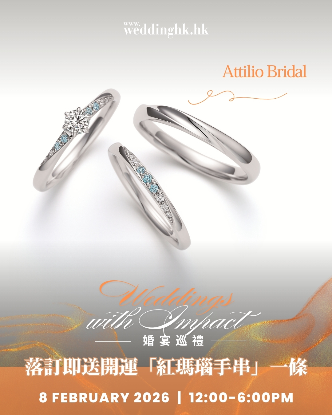 2月8日Eaton HKWeddings with Impact 婚宴巡禮 | Attilio Bridal 落訂即送開運「紅瑪瑙手串」一條等禮...