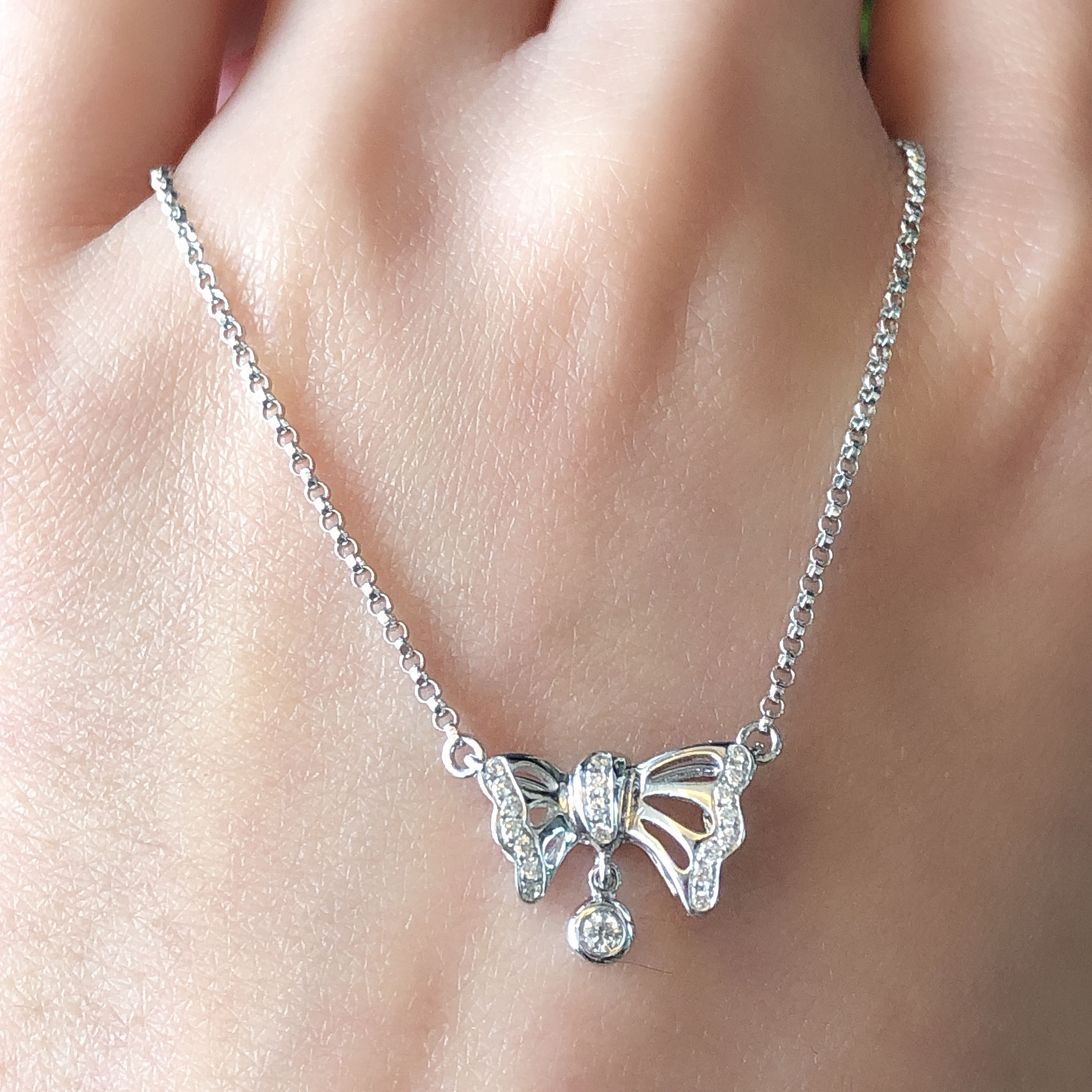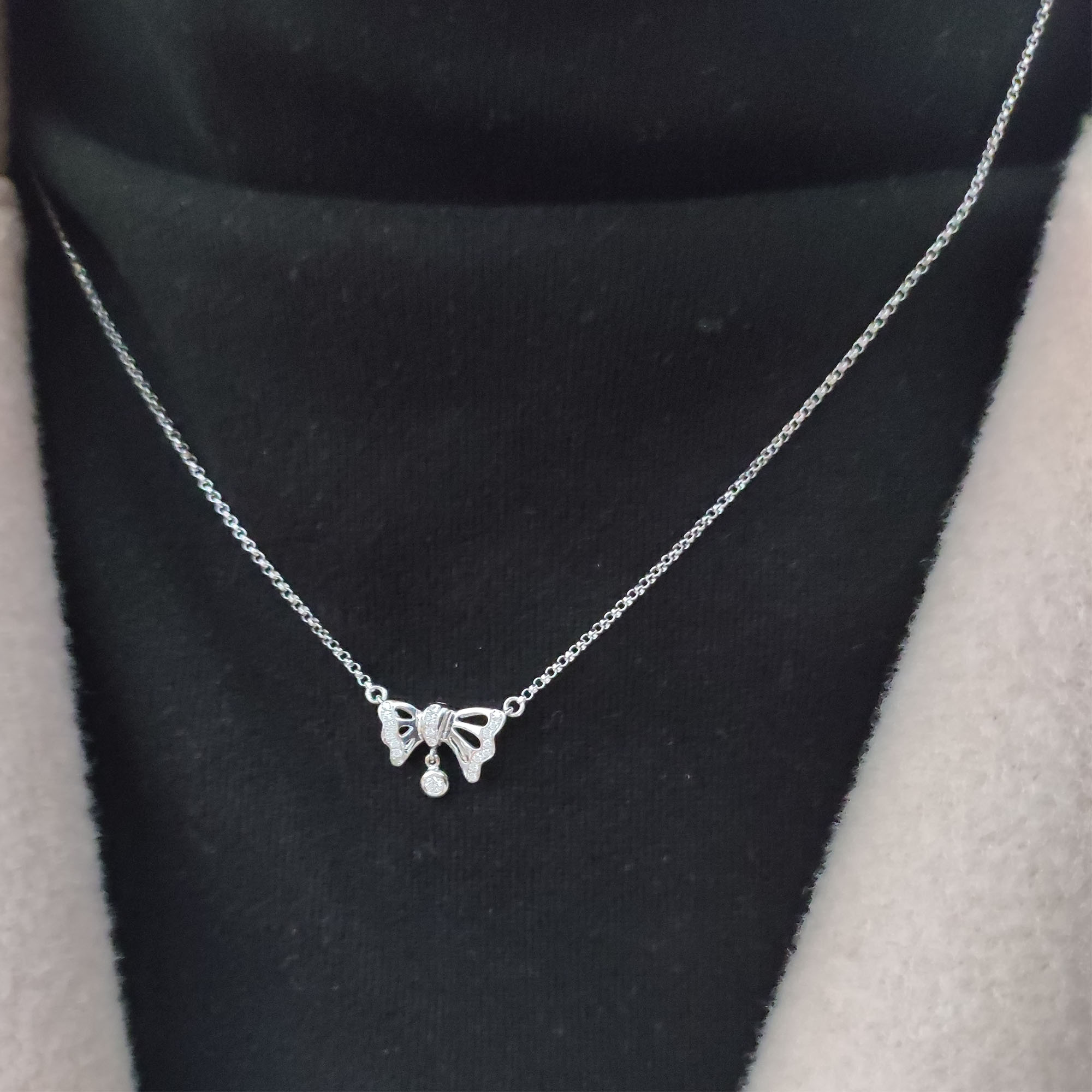 18K白金鑽石吊墜,吊墜鑲嵌20顆共0.068ct閃亮鑽石,並配搭18K白金項鍊,項鍊長度44cm.