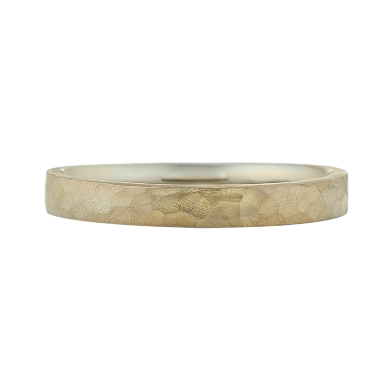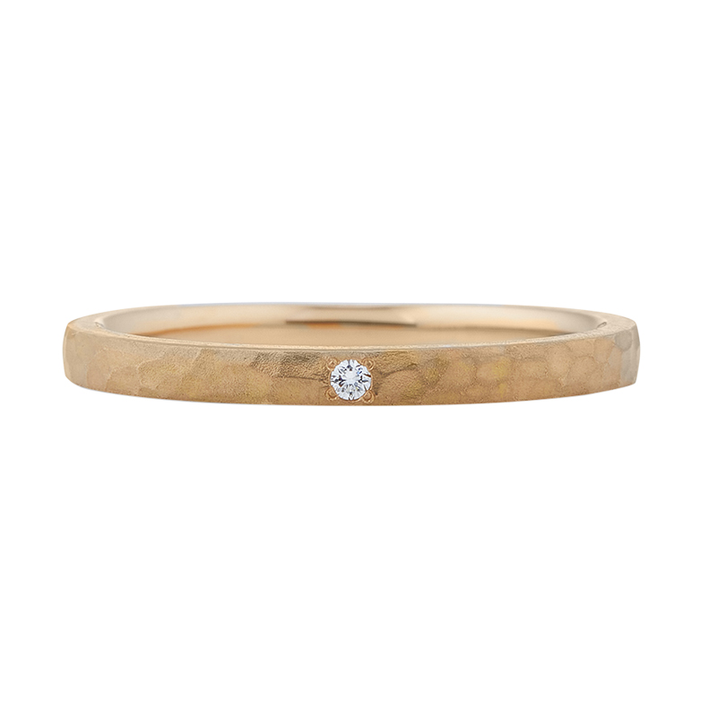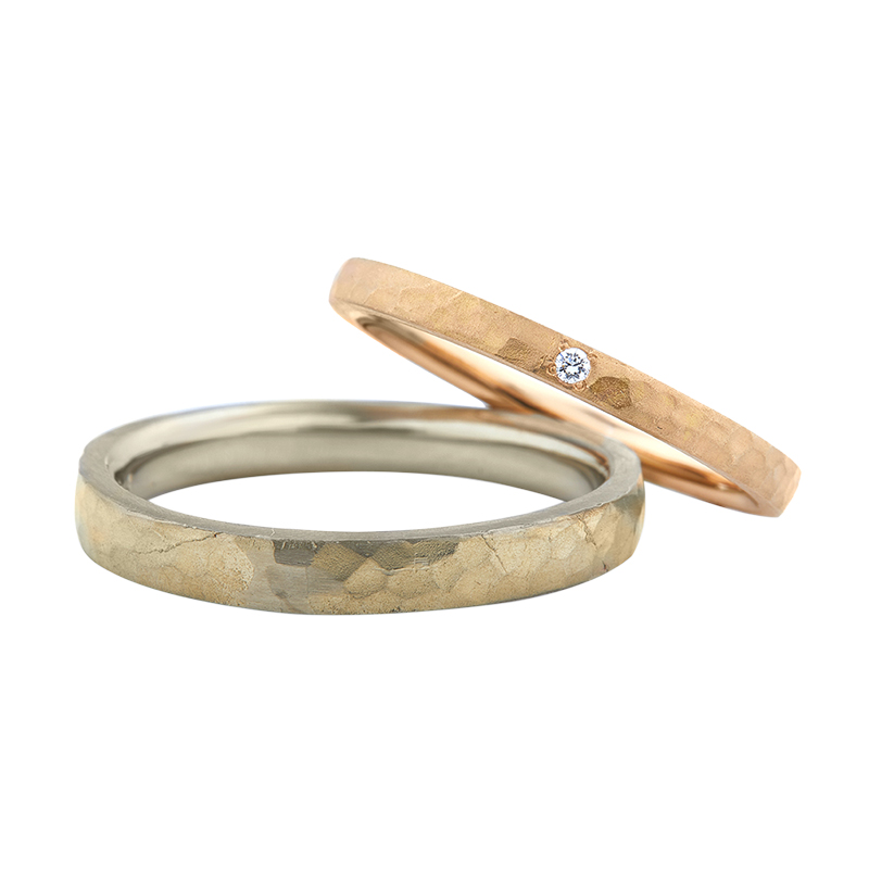 不規則的鎚面加上直身的設計,令對戒綻放天使光環一般的光華。