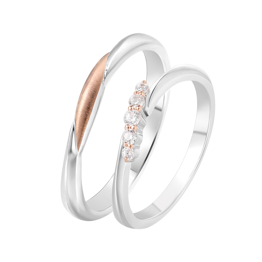18K red white color gold diamond couple ring embellished with 5pc (0.115cst) sparkling diamonds (Female) and 18K red white color gold ring(Male)