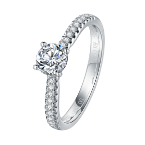 18K white Color Gold Diamond Ring center composed with 1pc (0.54ct) diamond, accompanied by 20pcs side sparkling diamond total at 0.160ct to create the perfect classic solitaire engagement ring for you.