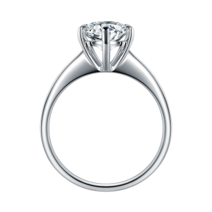 18K white Color Gold Diamond Ring center stone is composed with 1pc (1.02ct) diamond in a traditional four-prong set into the ring’s crown at the top and bottom of the bezel, ensuring sparkle from every angle.