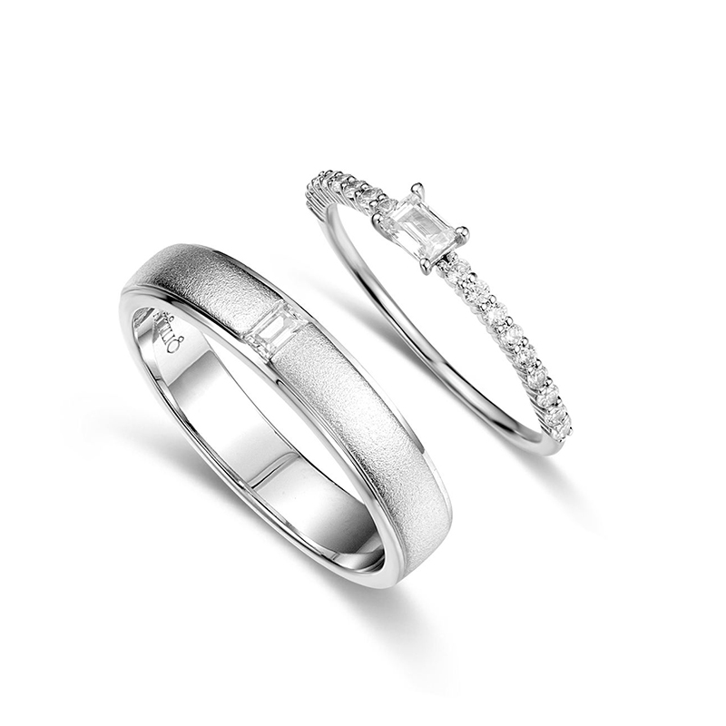 18K white color gold diamond couple ring – Baguette Diamond Collection