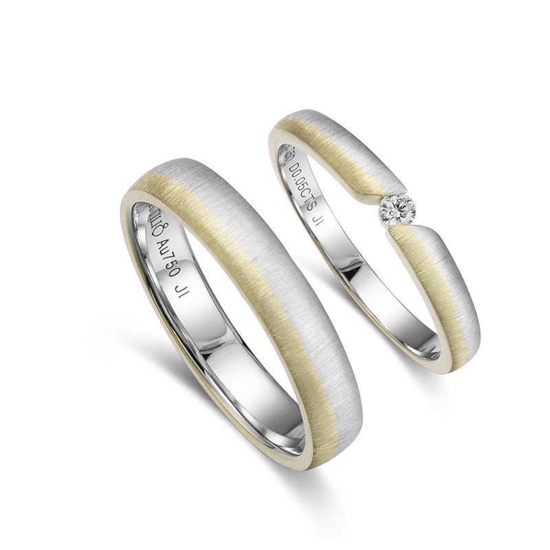 18K white yellow color gold diamond couple ring embellished with 1pc (0.050cts) sparkling diamonds (Female) and 18K white yellow color gold ring(Male) ,For PT950 white color gold diamond ring