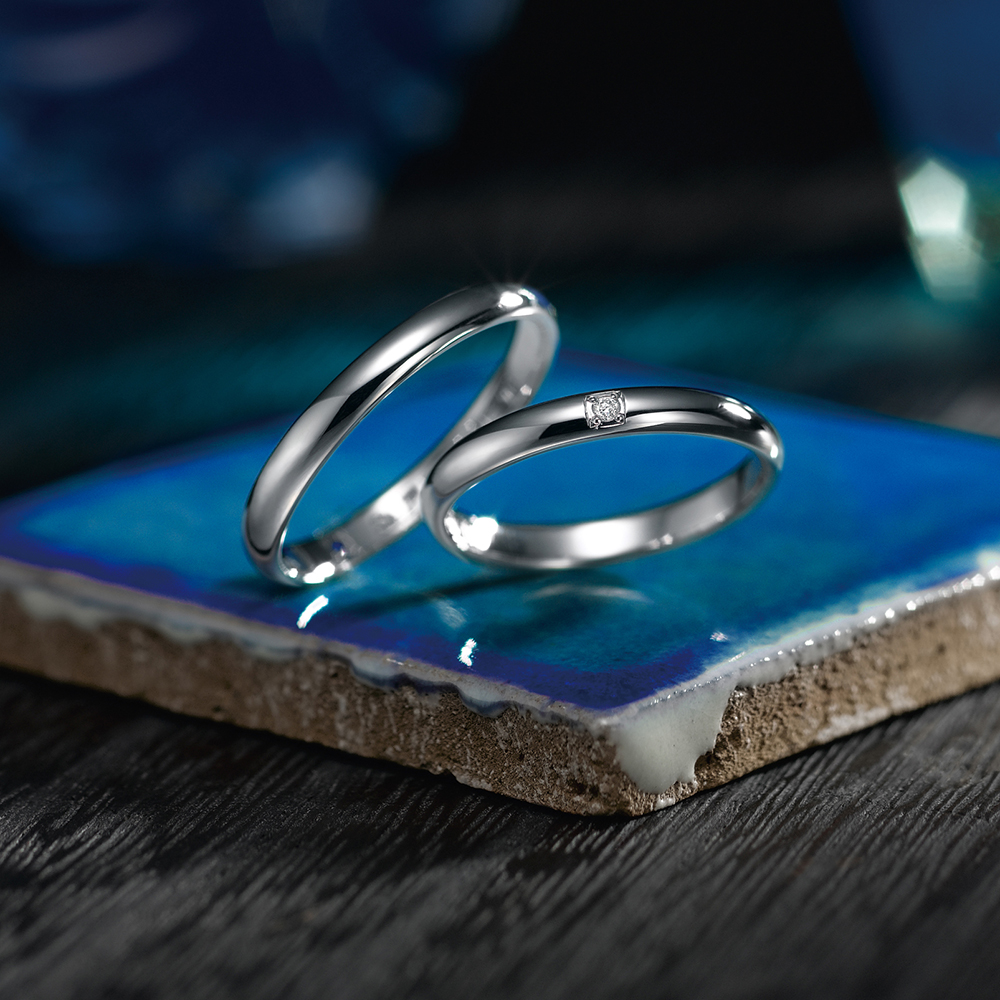 PT 950 ring embellished with 1pc (0.01cst) sparkling diamonds (Female) Surface Treatment (鏡面)