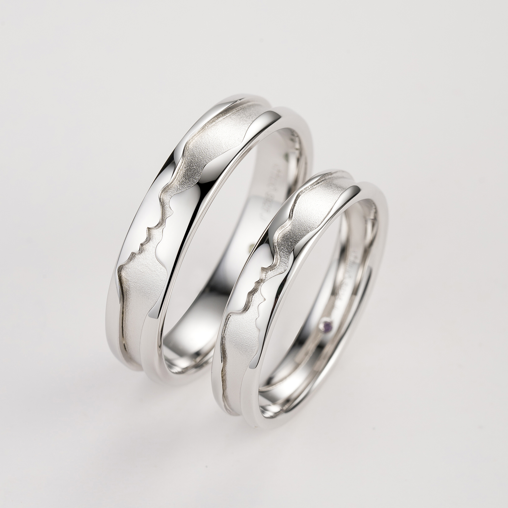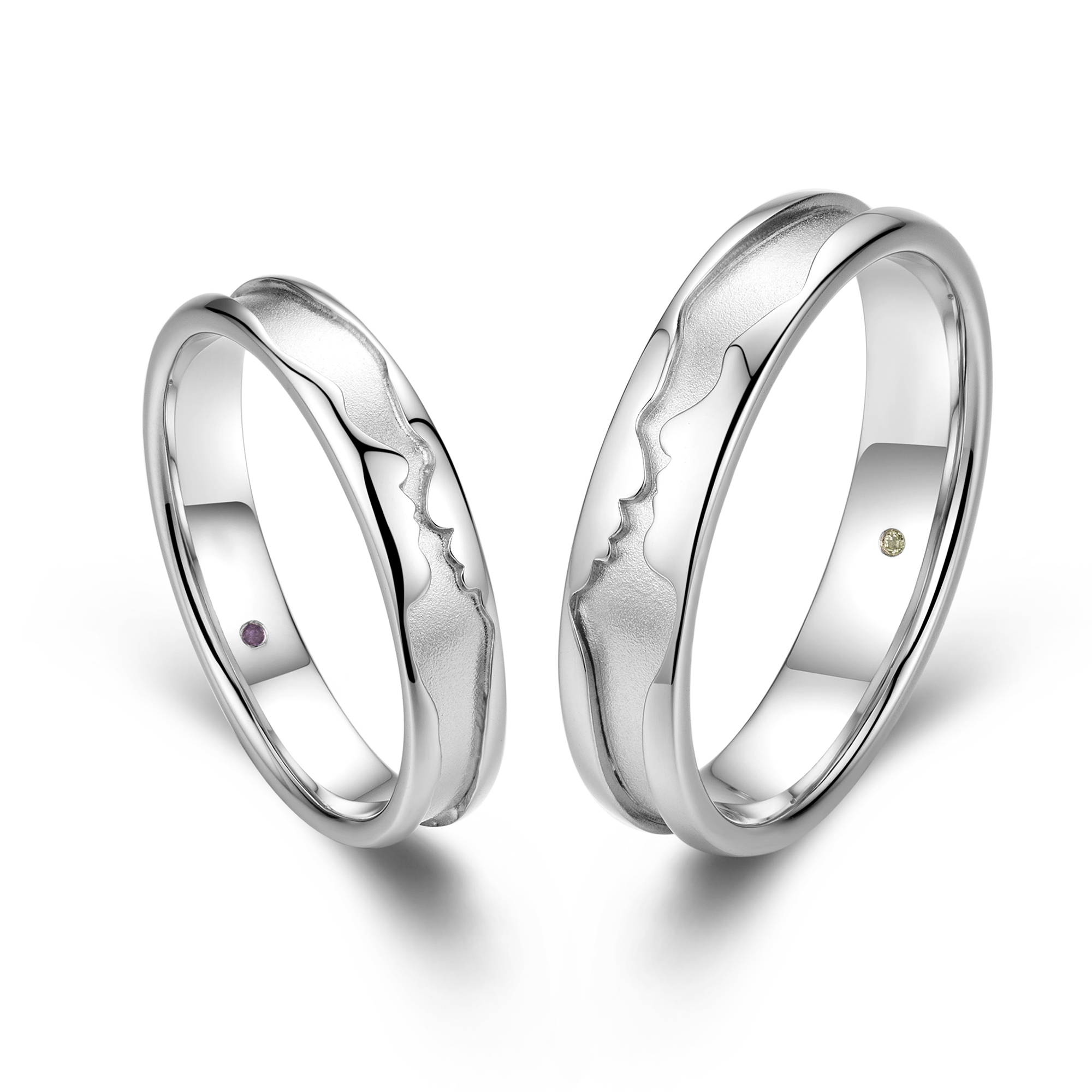 (請聯絡我們訂制)18K 黃金Two Become One 對戒 – Amour 戒指刻有新人兩方的側面輪廓,兩人拼合甜蜜面對面的畫面呈現在戒指上,寓意守護愛情到永遠。