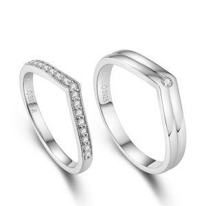 18K白色黃金鑽石對戒 –V形系列